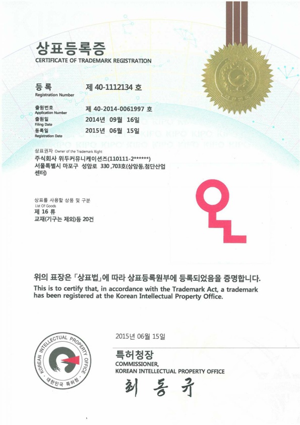 [Korea/Trademark] OLL 16 Class 페이지 정보 작성자 WeDu 댓글 0건 조회 5,926회 작성일 19-06-04 10:46 본문 2015-06-15 Trademark 40-1112134 16 Class List Previous[Korea/Trademark] OLL 09 Class 19.06.04 Next[Korea/Trademark] OLL 41 Class 19.06.04