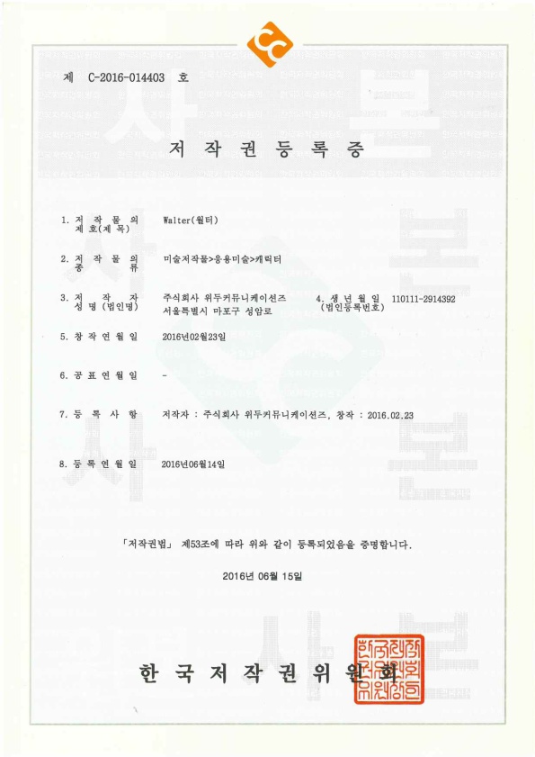 [한국/저작권] 월터 페이지 정보 작성자 WeDu 댓글 0건 조회 5,859회 작성일 19-05-30 19:09 본문 2016-06-15 저작권 C-2016-014403 월터 / 미술저작물>응용미술>캐릭터 List Previous[한국/저작권] 파벨 19.05.30 Next[한국/저작권] 필립 19.05.30